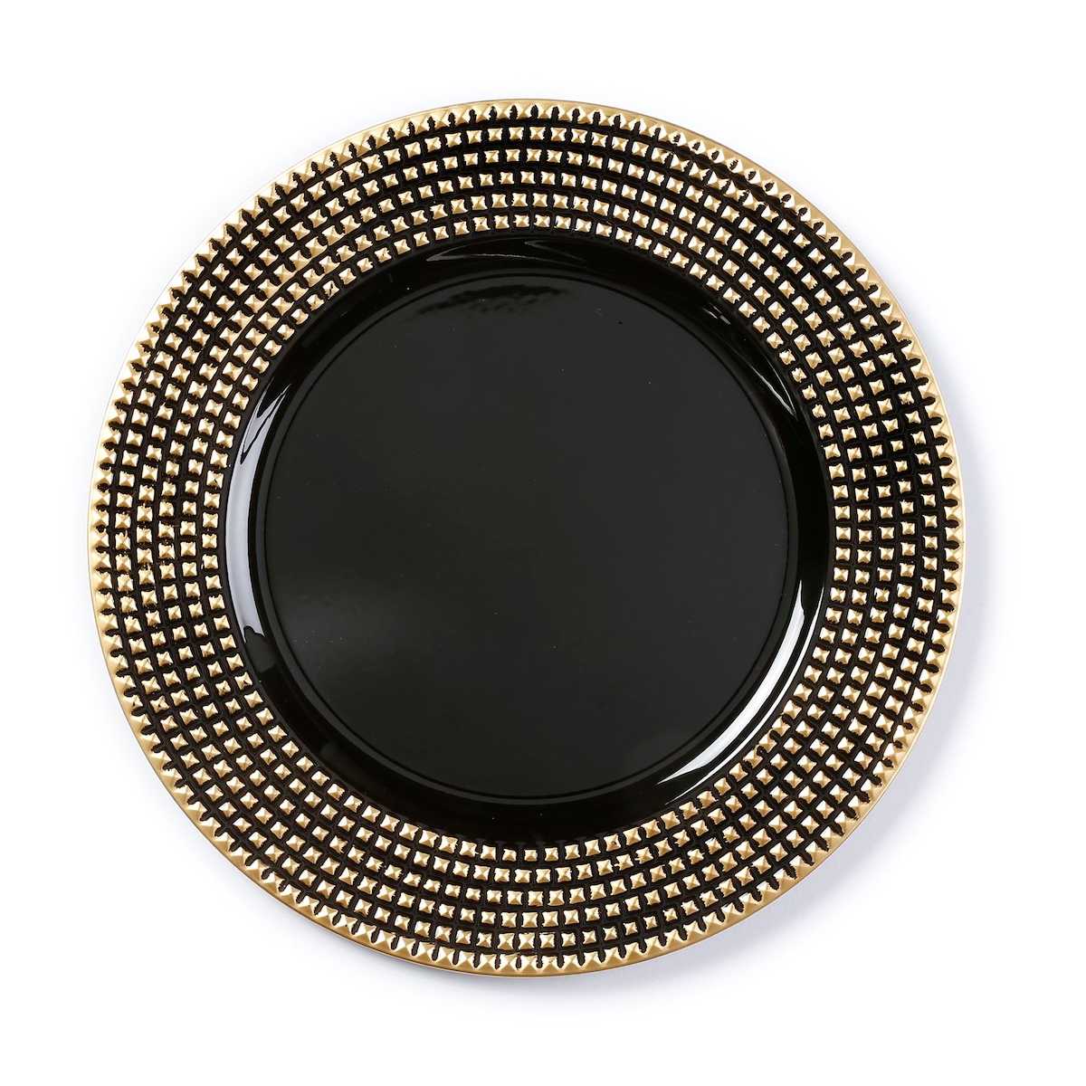 Inges Magic & Goodz Dekoteller Kunststoff mit Nieten am Rand 33cm schwarz / Gold