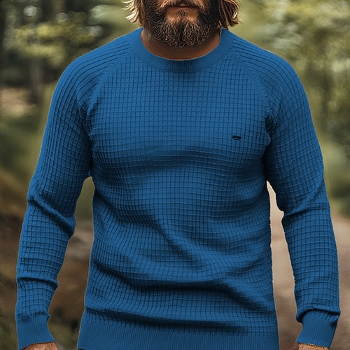 Per uomo Felpa Maglione Maglieria A Coste Maglia Top Regolari Plaid Girocollo Maglieria Neutro All'aperto Casual Quotidiano Abbigliamento Primavera Autunno Blu marino Blu S M L