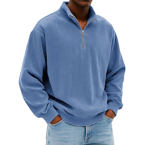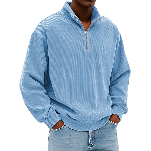Per uomo Maglia Velluto a coste Felpa con cappuccio Maglione Felpa con zip corta Blu Blu denim Nero Bianco Blu marino Colletto Mao Semplice Cerniera Testurizzato Casuale Quotidiano Sport Outdoor