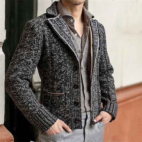 Per uomo Cardigan Maglione Corto Maglione a maglia A Coste Maglia Top Regolari Tasca Semplice Bavero Moda Classico Vacanza Abbigliamento quotidiano Abbigliamento Autunno Inverno Blu marino Grigio