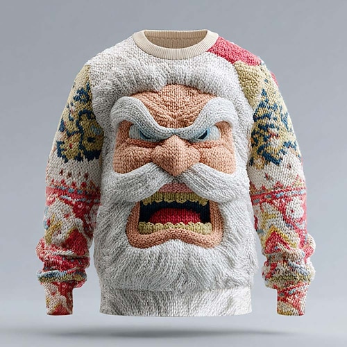 Maglione di Natale brutto Per uomo Babbo Natale Stampa 3D Maglione Maglieria Girocollo Casual Vacanza Quotidiano Festival Stampa 3D Tenere al caldo Manica Lunga Primavera Autunno Inverno Bianco Blu