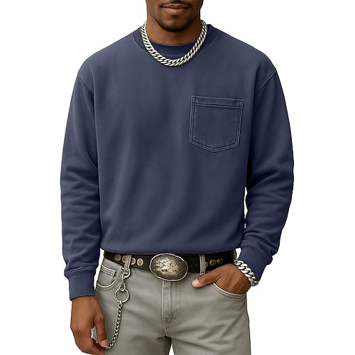 Per uomo Maglia Maglione Blu Rosso bordeaux Giallo Verde militare Blu marino Girocollo Semplice Patchwork Tasca Sport Outdoor Casuale Quotidiano Vintage Streetwear Abbigliamento Sportivo Primavera