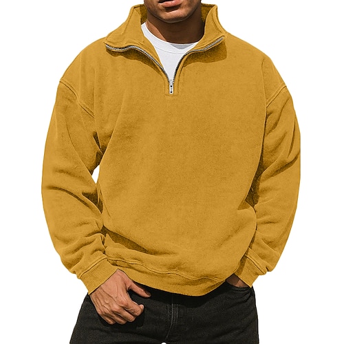 Per uomo Maglia Felpa con cappuccio Maglione Felpa con zip corta Blu Blu denim Giallo Rosa Blu marino Colletto Mao Semplice Con zip Casuale Quotidiano Sport Outdoor Streetwear Cool Abbigliamento