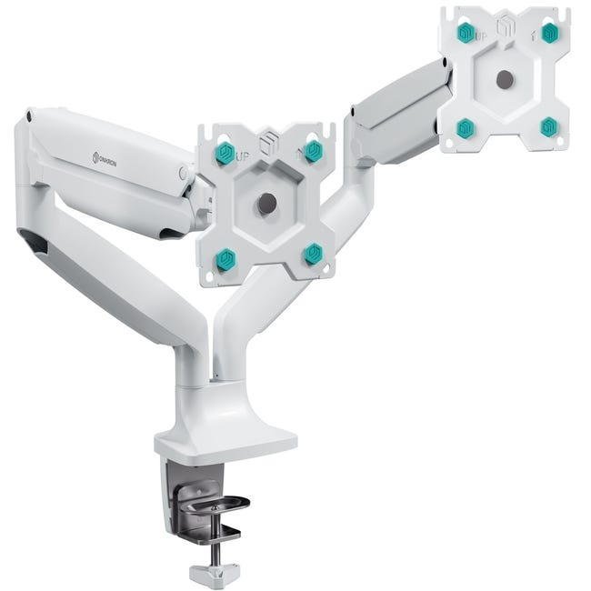 ONKRON Dual Monitor Halterung für 13-32 Zoll, bis 9 kg (x2), VESA 75x75 & 100x100, schwenkbar, neigbar, drehbar, Weiß G200-W