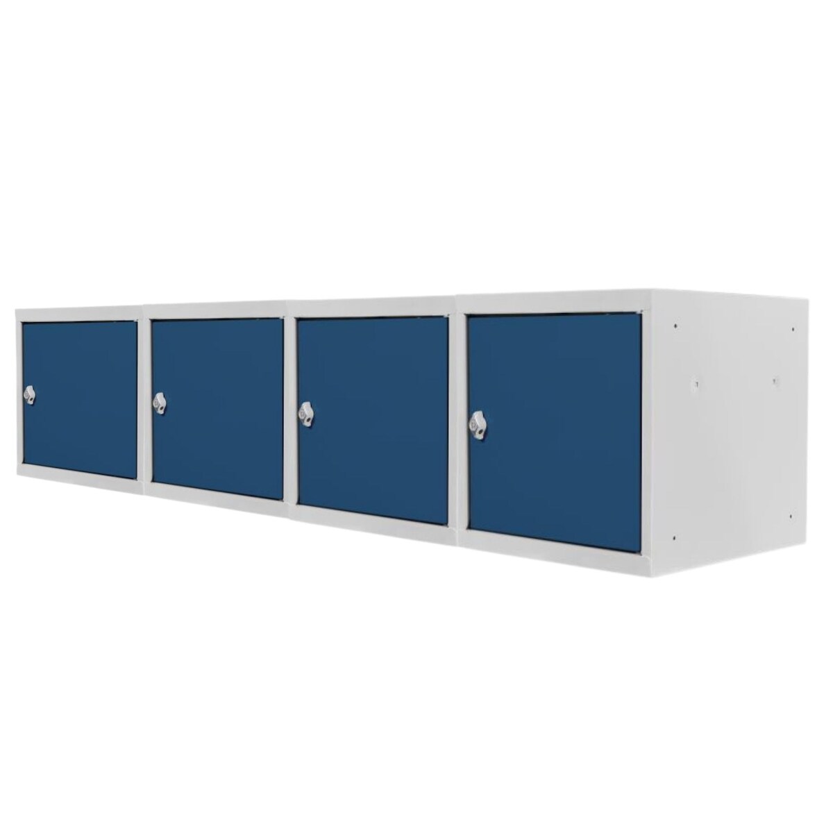 Proregal Mega Deal | 4x Schließfachwürfel Blocky mit Drehriegelschloss für Vorhängeschloss | HxBxT 40x40x40cm | Lichtgrau/Blau
