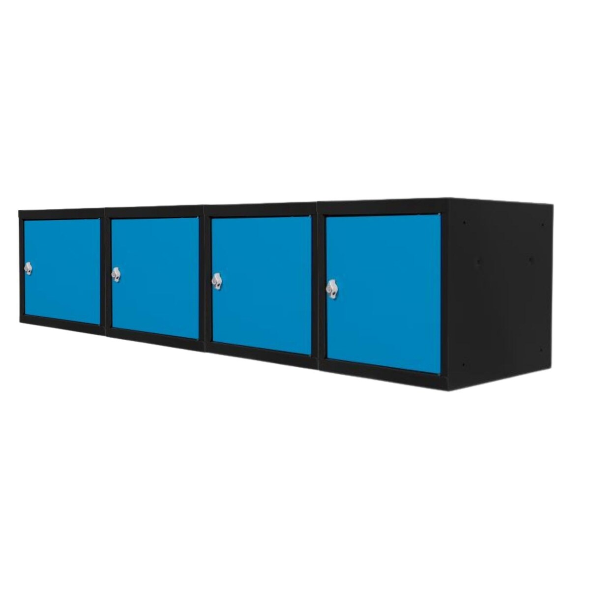 Proregal Mega Deal | 4x Schließfachwürfel Blocky mit Drehriegelschloss für Vorhängeschloss | HxBxT 40x40x40cm | Anthrazit/Enzianblau