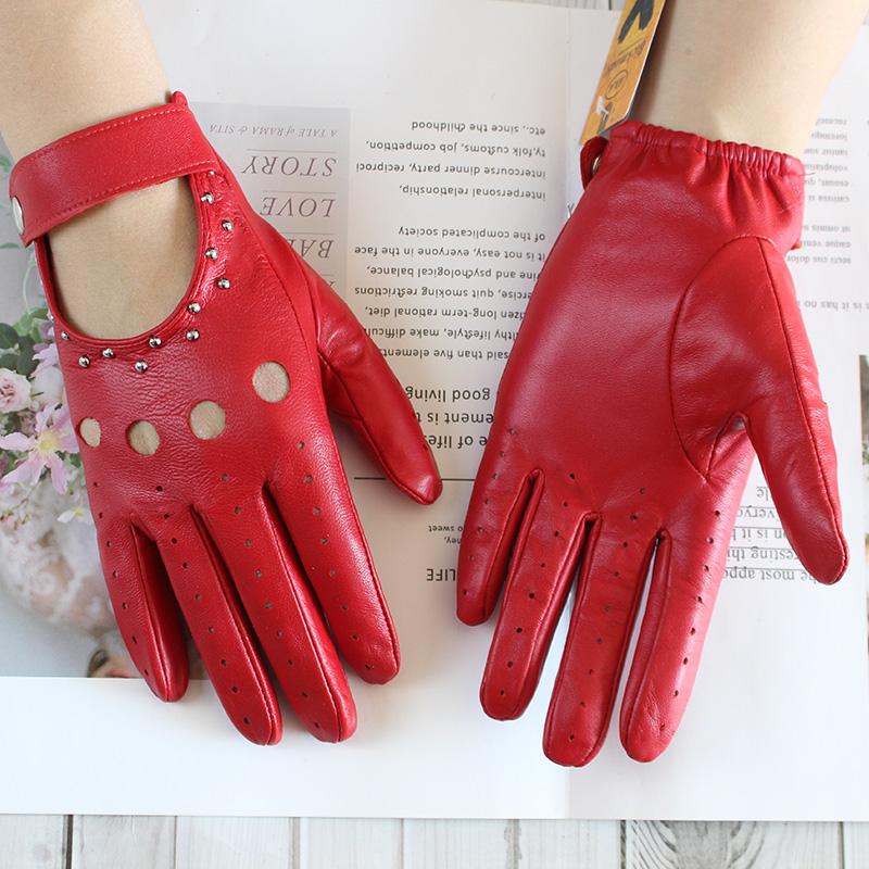 Mode Leder Fahrerhandschuhe Damen Einzeln Dünn Ungefüttert Nieten Auto Fahren Motorrad Fahren Vollfinger Lammfellhandschuhe cm