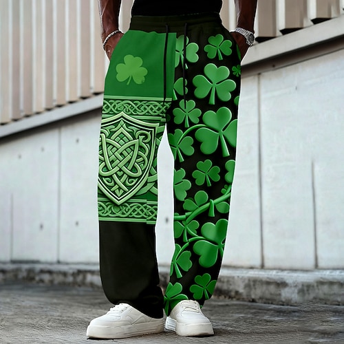 Festa di San Patrizio Per uomo Quadrifoglio Trifoglio Nodo celtico Pantaloni da tuta Pantaloni Pantaloni casual Misura del girovita medio Moda Casual Ferie Coulisse elastica in vita Pantaloni a gamba