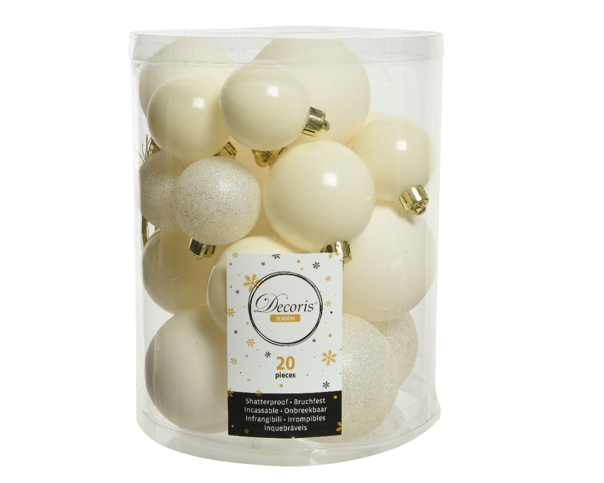 20 Weihnachtskugeln 4-6cm Kunststoff Christbaumkugeln Weihnachtsbaum Wollweiß