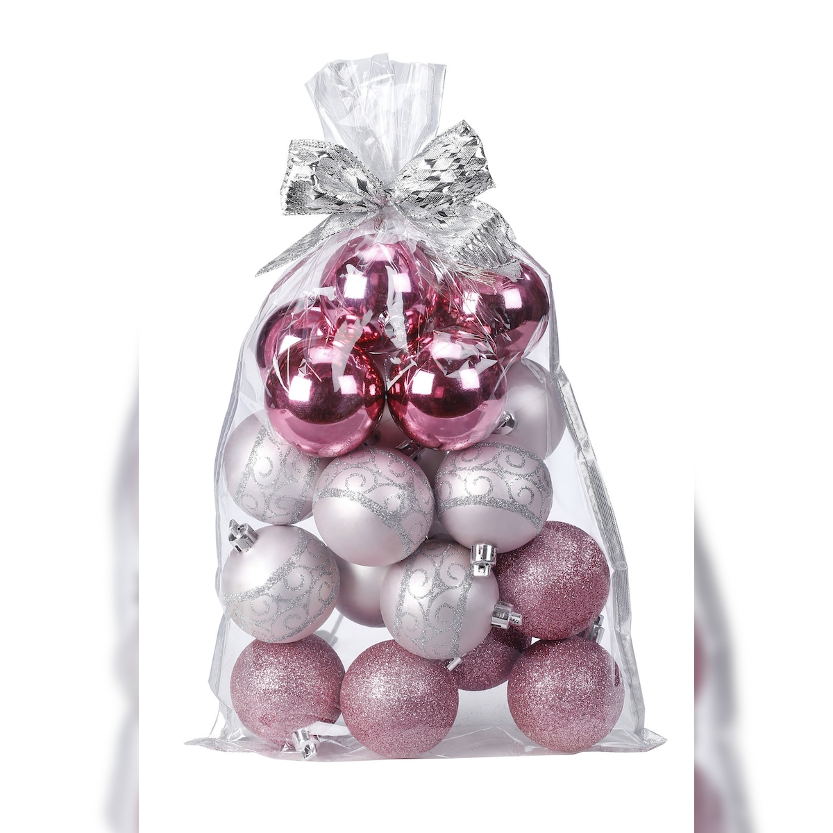 60 Weihnachtskugeln 6-7cm Kunststoff Ornamente Christbaumkugeln rot pink rosa