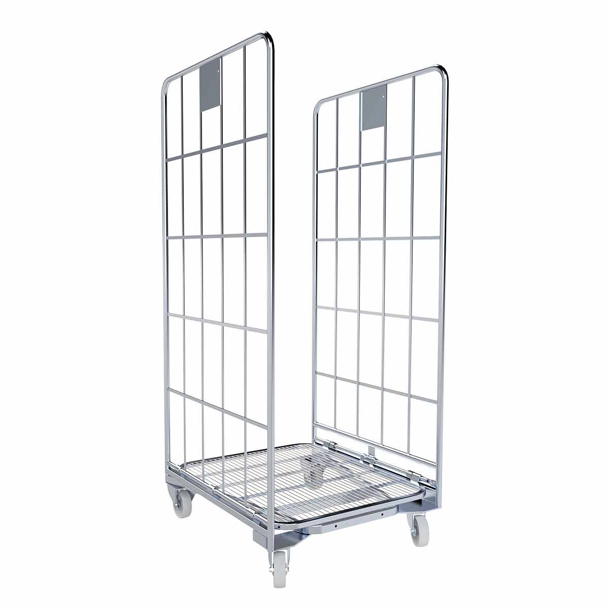 Oswald Transportgeräte Nestbarer Rollbehälter ERGO, 700 x 800 x 1.665 mm, 2-seitig, Nutzhöhe 1.465 mm, Rollplatte aus Metall, 500 kg