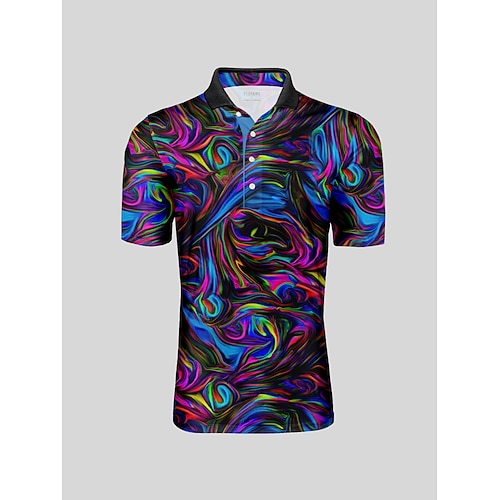 Per uomo Astratto Golf Polo Sportivi Manica Corta Magliette polo Camicie con Colletto Casual Athleisure Bottoni Primavera Estate Blu Rosso Viola