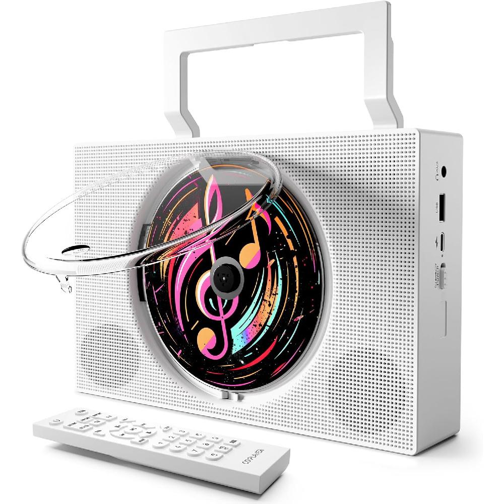 Tragbarer CD-Player, an der Wand montierbar, LED-Bildschirm, Stereo-Bluetooth-Musikplayer mit IR-Fernbedienung, FM-Radio, USB-TF-Kartenwiedergabe. vio