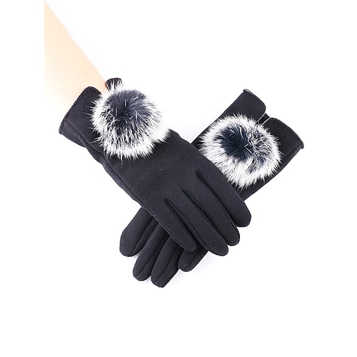 Guanti touchscreen natalizi da donna con pompon in pelliccia sintetica di coniglio, caldo tessuto in poliestere, vari colori, perfetti per la moda invernale e come regali per le feste