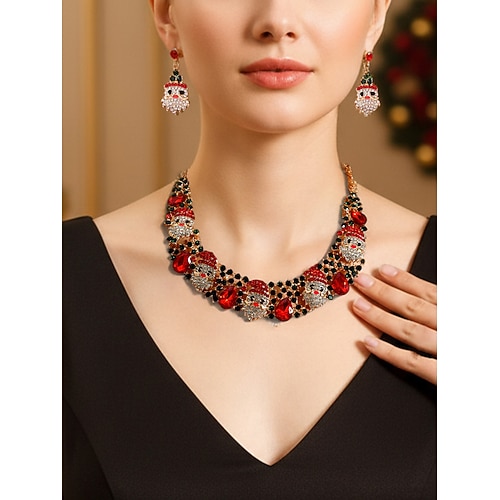 set di gioielli da donna con perle e pietre preziose verdi, 3 pezzi, girocollo vintage, braccialetto anello per feste di Natale, regali per le feste serate eleganti