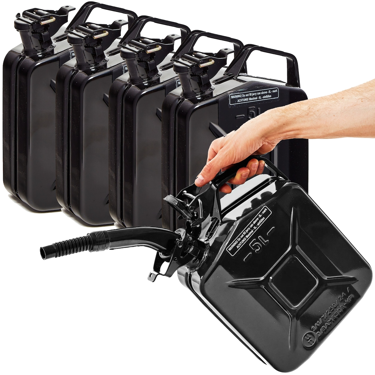 BW® Kraftstoffkanister Metall Benzinkanister 5x 5 Liter mit Ausgießer - Schwarz - RAL 9005 - TÜV-geprüft und UN-Zulassung - Made in Europe