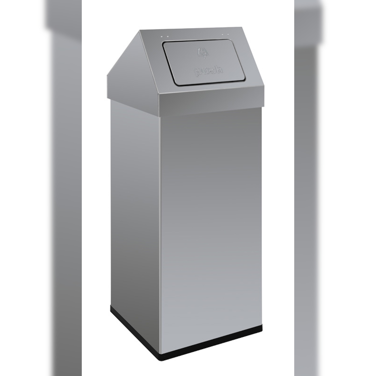 PROREGAL Eckiger Edelstahl Abfallbehälter Haiti mit Push-Deckel | 110 Liter, HxBxT 100x39x39cm | Silber