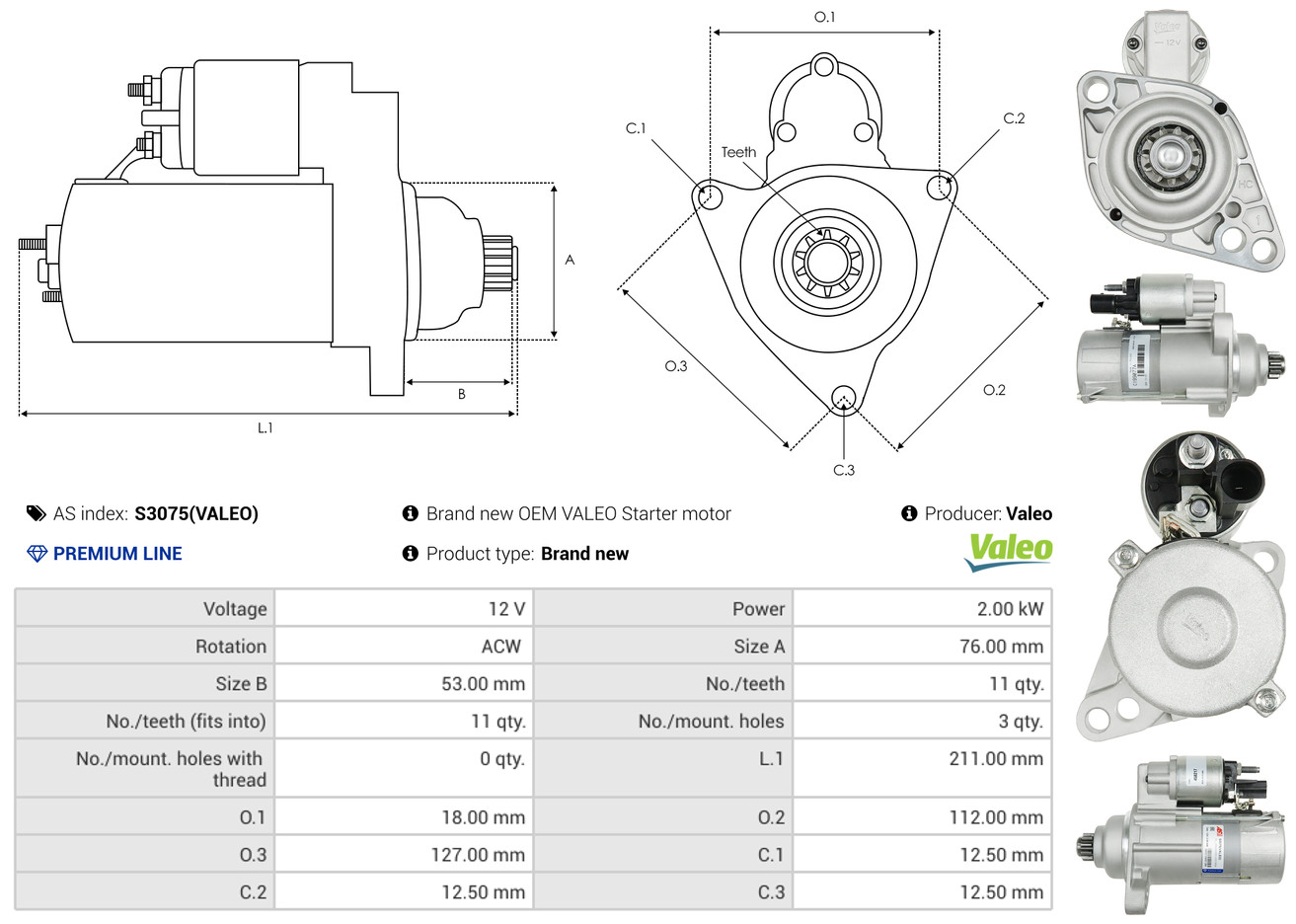 AS-PL Starter S0233PR 12V für VW 077911023EX 77911023EX 77911023E