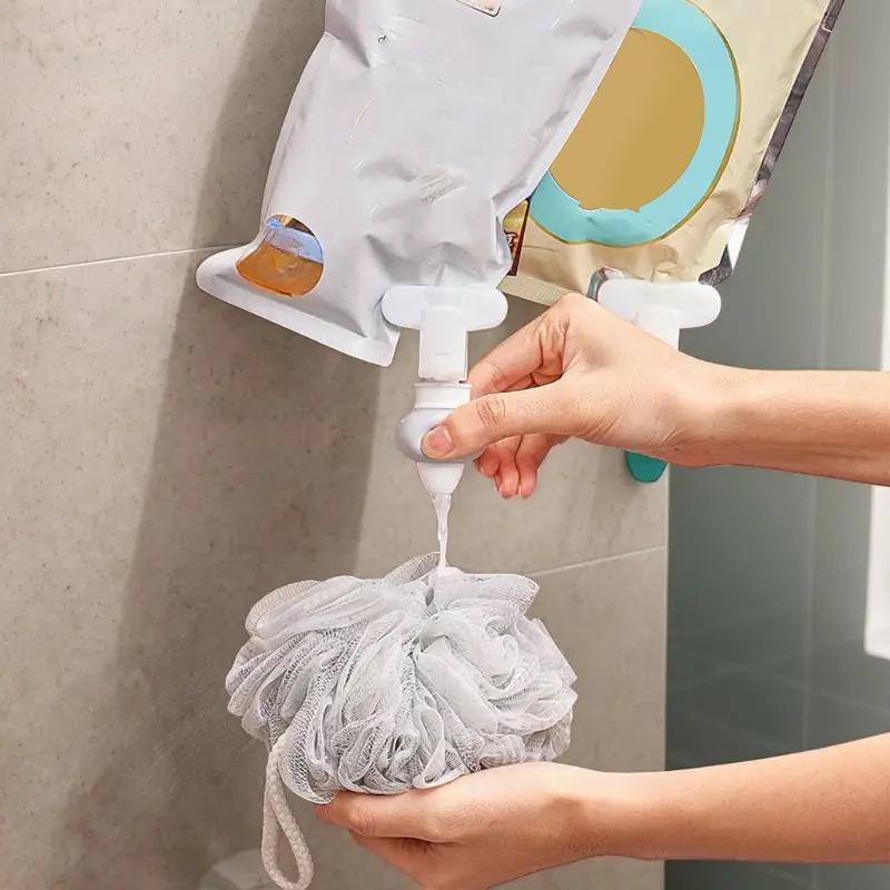 Hanging Shower Gel And Shampoo Squeeze Dispenser With Hooks Silicone Shower Gel Hook Clip Bathroom Storage Space-Saving Reusable