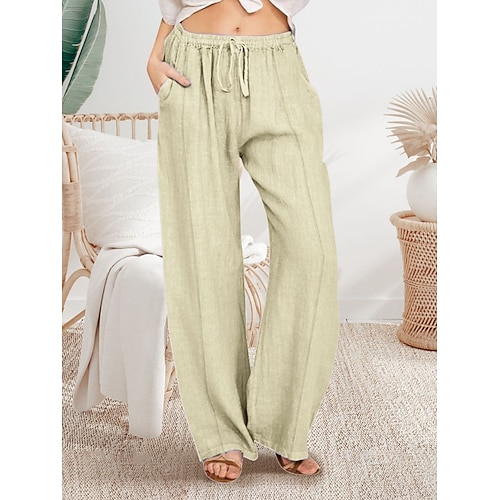 Per donna Pantaloni in cotone e lino Tuta da lavoro Pantaloni Palazzo Moda Streetwear Comfort Lunghezza intera Misura del girovita medio Semplice Tasca Comodo All'aperto Confortevole Streetwear
