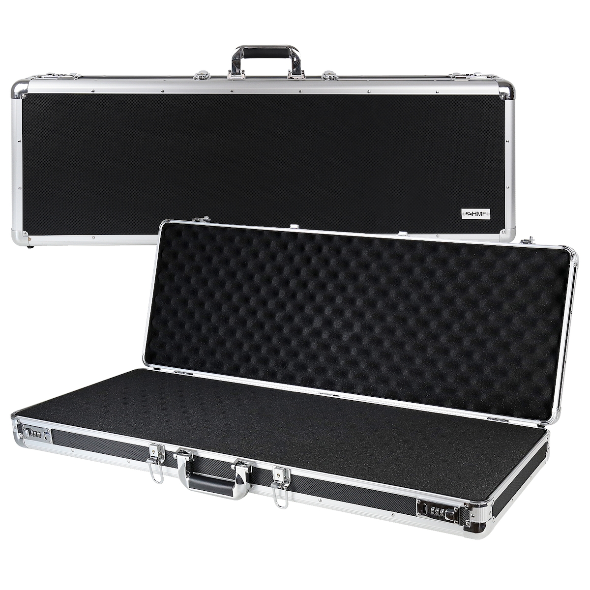 HMF Alu Transportkoffer mit Rasterschaumstoff, 96 x 36 x 12 cm, Schwarz