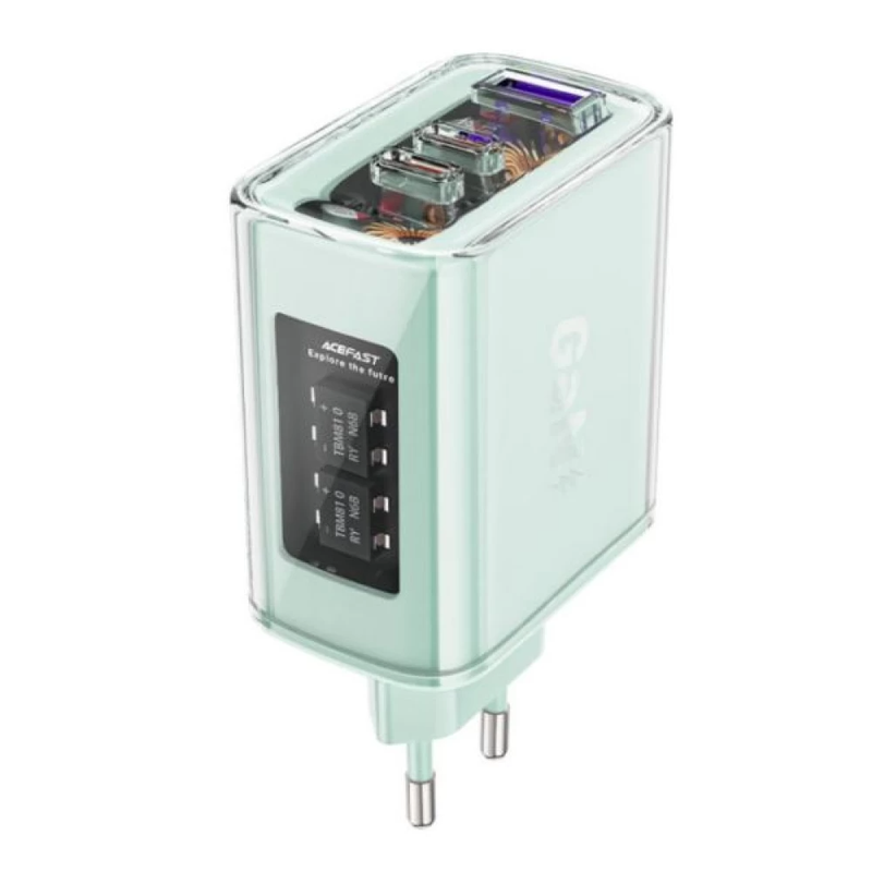 Acefast A45 GaN-Ladegerät 65W 3 Ports (1x USB, 2x USB-C) Grün