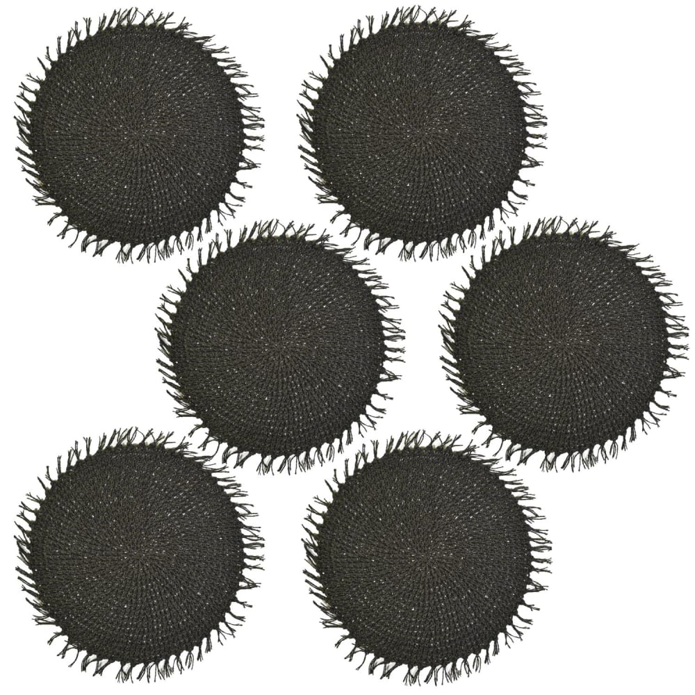 Lot de 6 sets de tables ronds en jute noir Diam. 38 cm