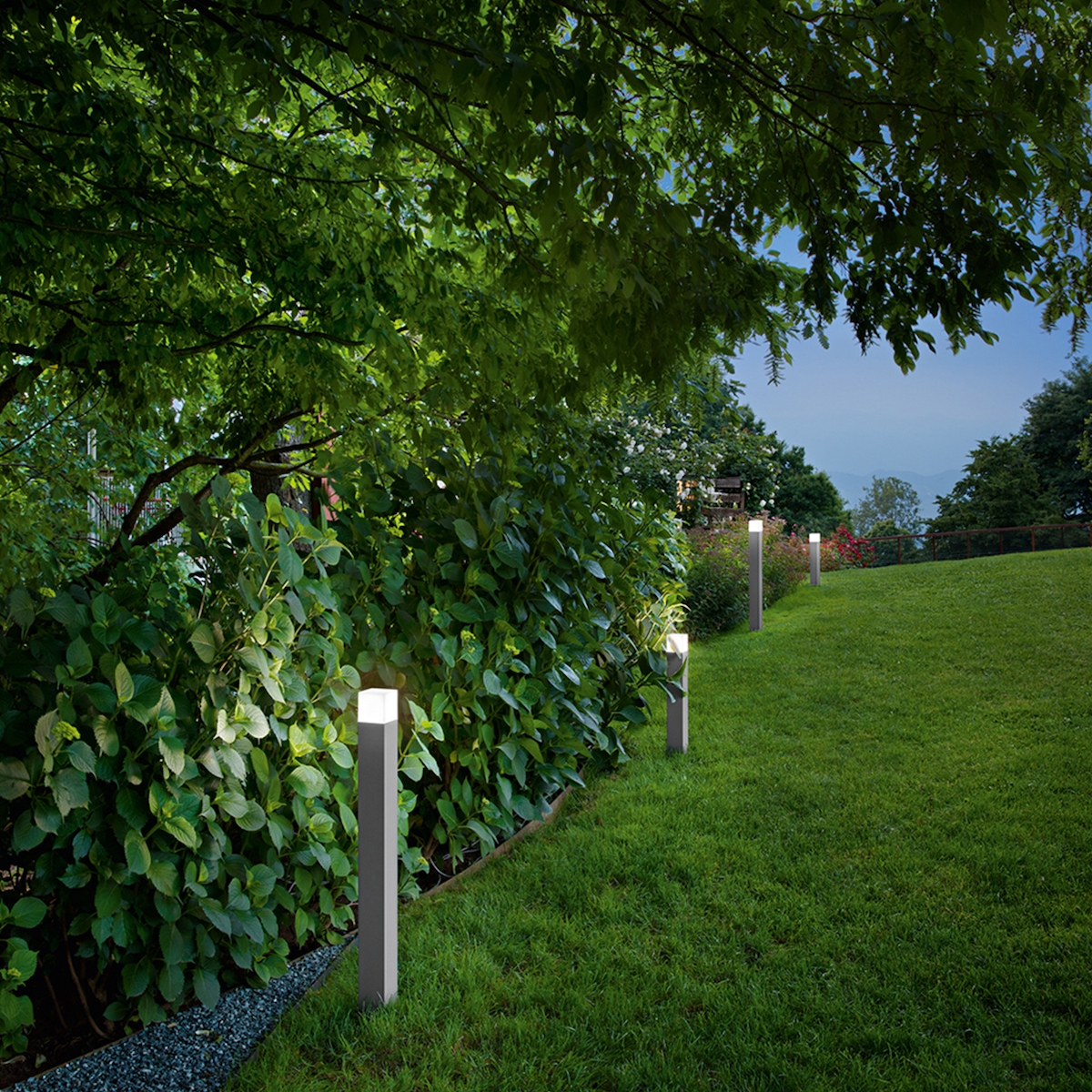 Tower - Gartenpollerleuchte mit 1 x E27 Max. 20 W Leuchtmittel, Schutzart IP54, Aluminium, Außenpollerleuchte, hellgrau, Höhe 90 cm - Perenz