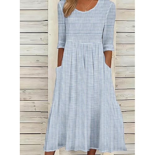 Per donna Abito Midi Vestito Casual Abito a trapezio Elegante Casual Vacanza Quotidiano Vestibilità comoda A righe Manica Corta Girocollo Grigio Azzurro Estate Primavera