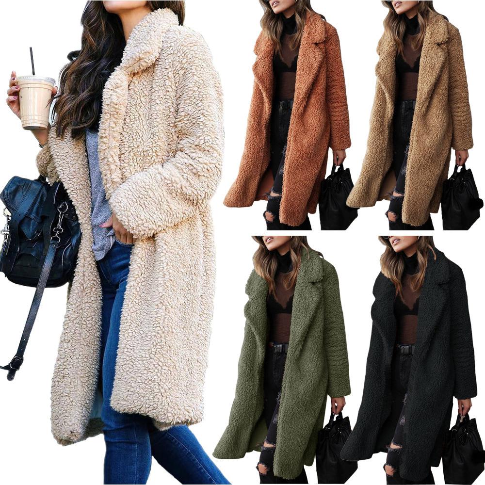 Casual Fashion Warm Jacket Female Fur Coat Classic Solid Color Coat Ladies Winter Plush Coat cm white