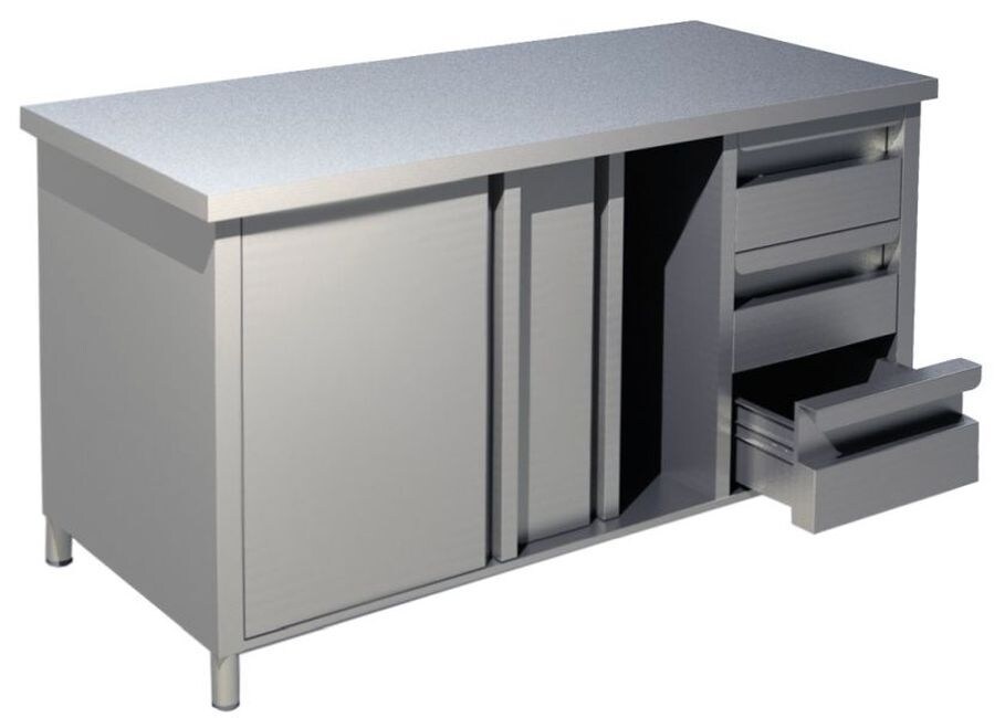 KBS Gastrotechnik KBS Arbeitsschrank mit 2 Schiebetüren und 3 Schubladen 1600 x700 x850 mm