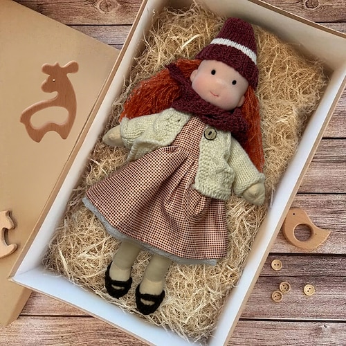 Bambola Waldorf fatta a mano per bambina con set di vestiti - bambola di peluche morbida da 11,8 pollici per bambini piccoli, regalo di Natale ideale per bambini