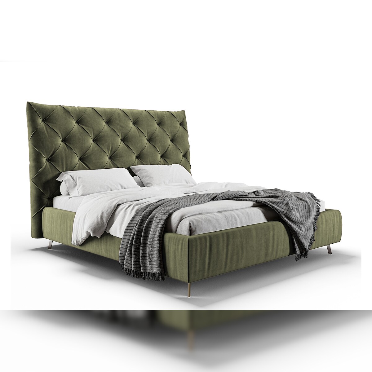 KAWOLA Bett ANNY Polsterbett Velvet olivgrün 140x200cm