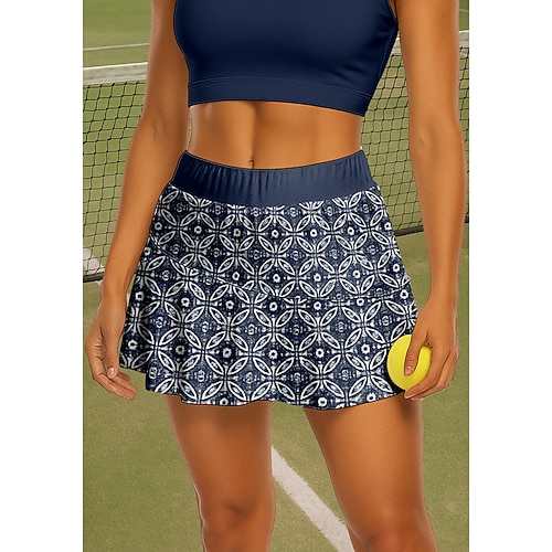 Per donna Geometrico Gonne da tennis Patchwork Tasca 2 in 1 UPF50 Resistente ai Raggi UV Con tasche Pallavolo Tennis Badminton Pantaloncini Gonna Blu marino Abbigliamento da tennis