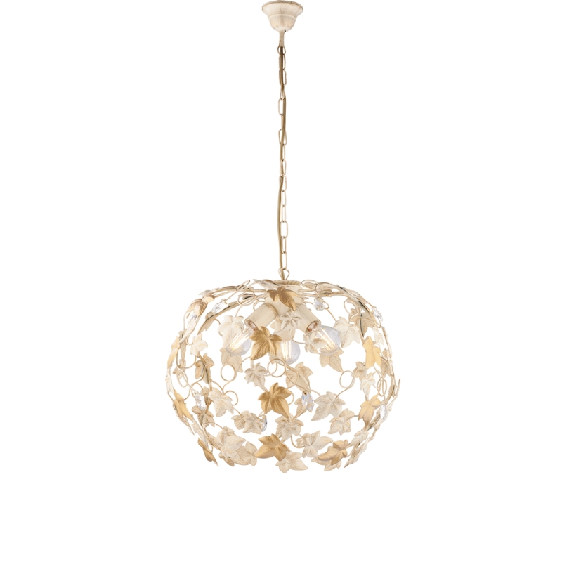 BeLight Edera - Kronleuchter aus elfenbeinfarben lackiertem Eisen mit antikem Golddekor und Kristall-Strasssteinen, 3 Lichter, 105 - Ø50 - BL50-3-AV