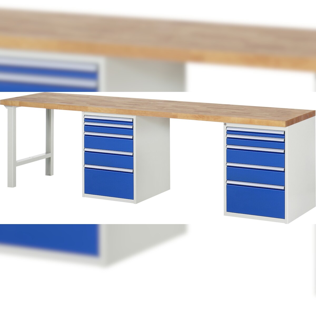 Werkbank, Baukastensystem Serie 7000, 10 Schubladen, 5 Türen, Tiefe 900 mm, Breite 3000 mm eurokraft pro