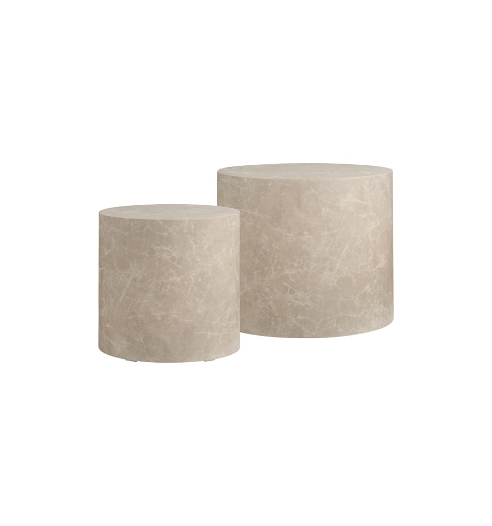Set de 2 Tables basses décor marbre beige ø38 cm/ ø48 cm
