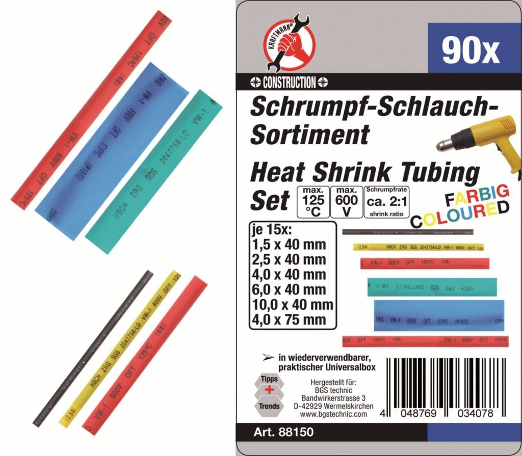 Kraftmann 88150 Schrumpfschlauch Sortiment farbig 90tlg 1,5 bis 10mm