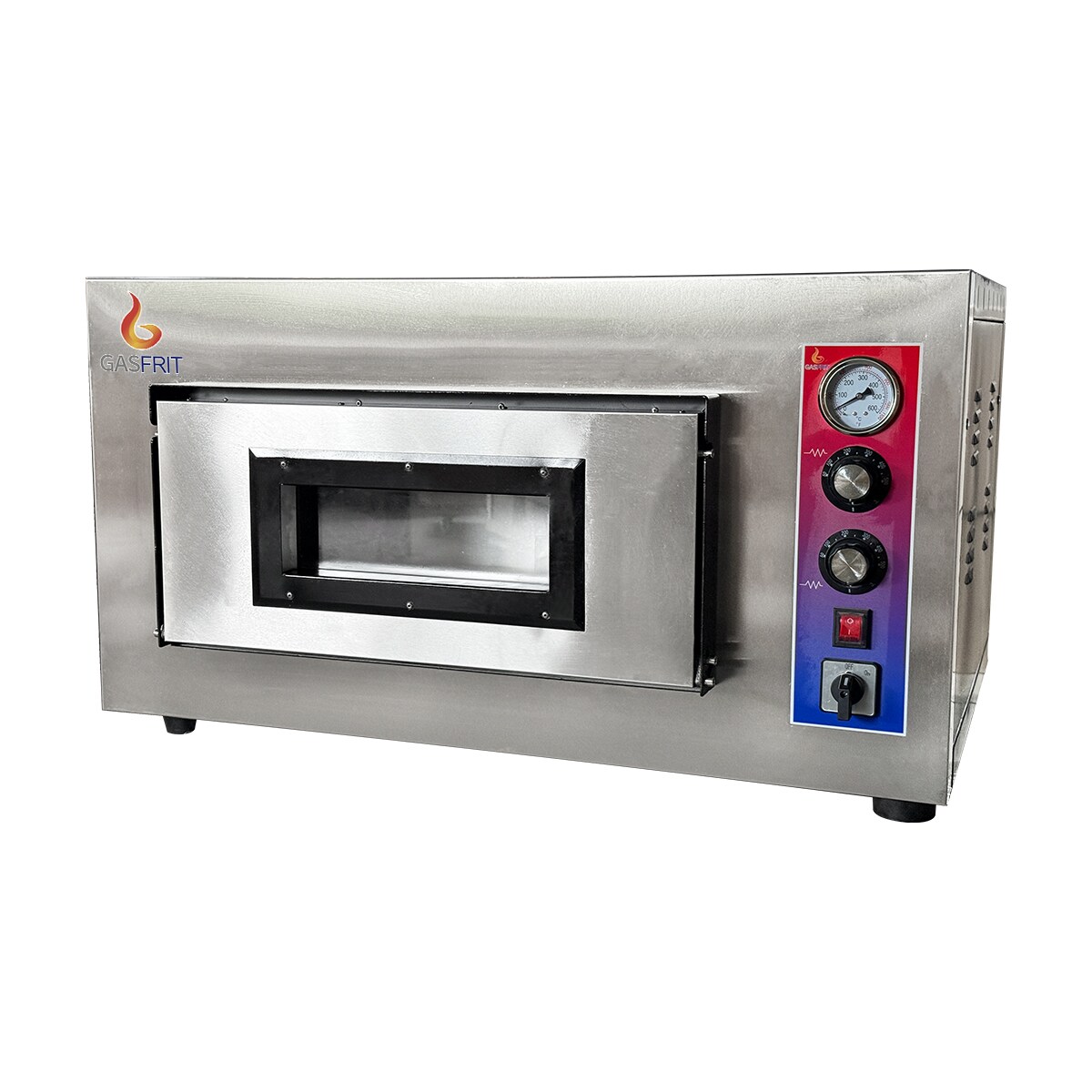 Gasfrit – Industrieller Elektrischer Pizzaofen mit 1 Kammer, 4 × 26 cm, mit feuerfester Keramikbodenplatte und Qualitäts-Thermostat |