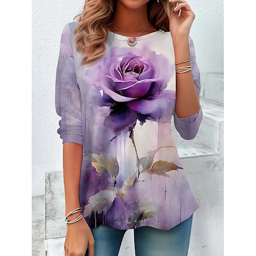 Per donna Maglietta Ombre Floreale Grafico Vintage Elegante Classico Manica Lunga Girocollo Top Regolari Quotidiano Stampato Viola Primavera Autunno Inverno