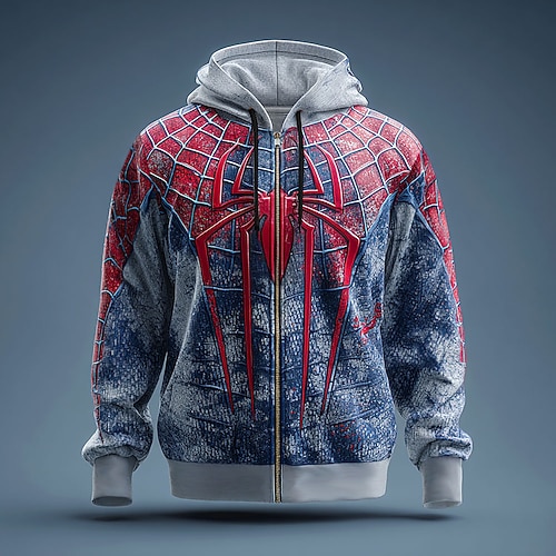 Felpa con Cappuccio Spider 3D da Uomo Punk Cool Collo a Girocollo Regalo Party Streetwear Blu Viola Coulisse Cerniera Autunno Inverno Designer