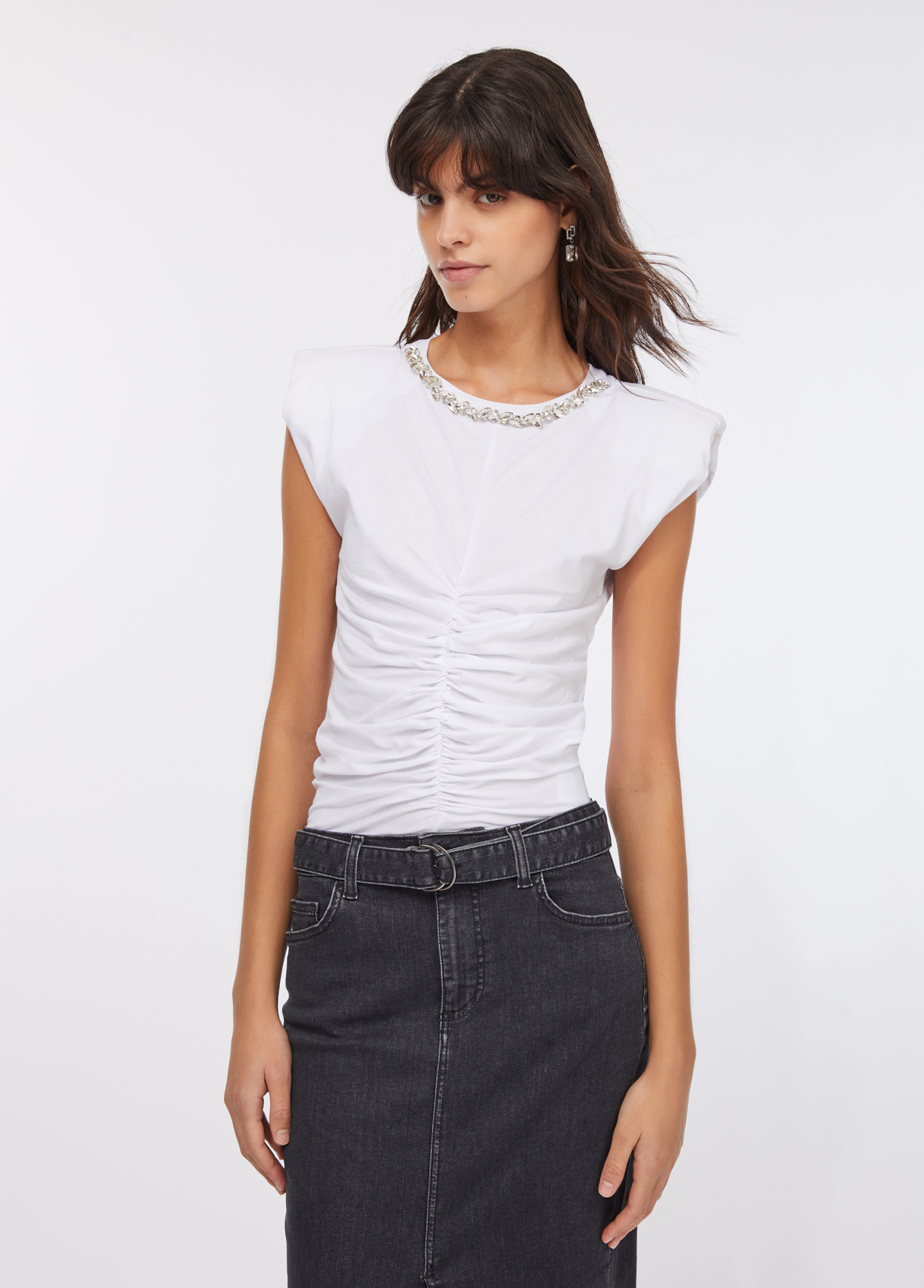 Liu Jo Top Aus Baumwolle Mit Strass, Weiß, L