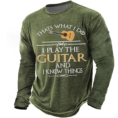 T-shirt da uomo a maniche lunghe con grafica Questo è quello che faccio, suono la chitarra e so le cose, maglietta vintage verde militare per musicisti, abbigliamento, abbigliamento, s m l xl xxl