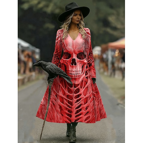 Abito midi da donna con stampa teschi taglio A vacanza casual