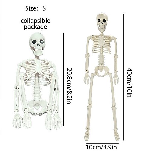 scheletro a figura intera con articolazioni mobili e snodabili, ossa di plastica realistiche, accessorio di Halloween per decorazioni da esterno in stile casa stregata