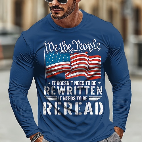 250° anniversario dell'America Per uomo Bandiera Americana Maglietta Manica Lunga maglietta Stampa 3D Girocollo Camicia Quotidiano Casual Quotidiano Viaggio Feste Blu Nero Rosso Estate Primavera