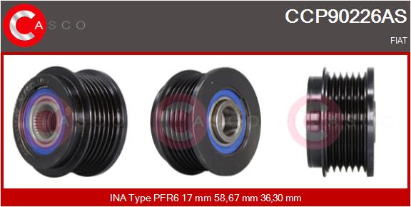 CASCO Riemenscheibe, Generator CCP90226AS Universal 58,67mm für FIAT IKA 77364082 353840 3.5384.1