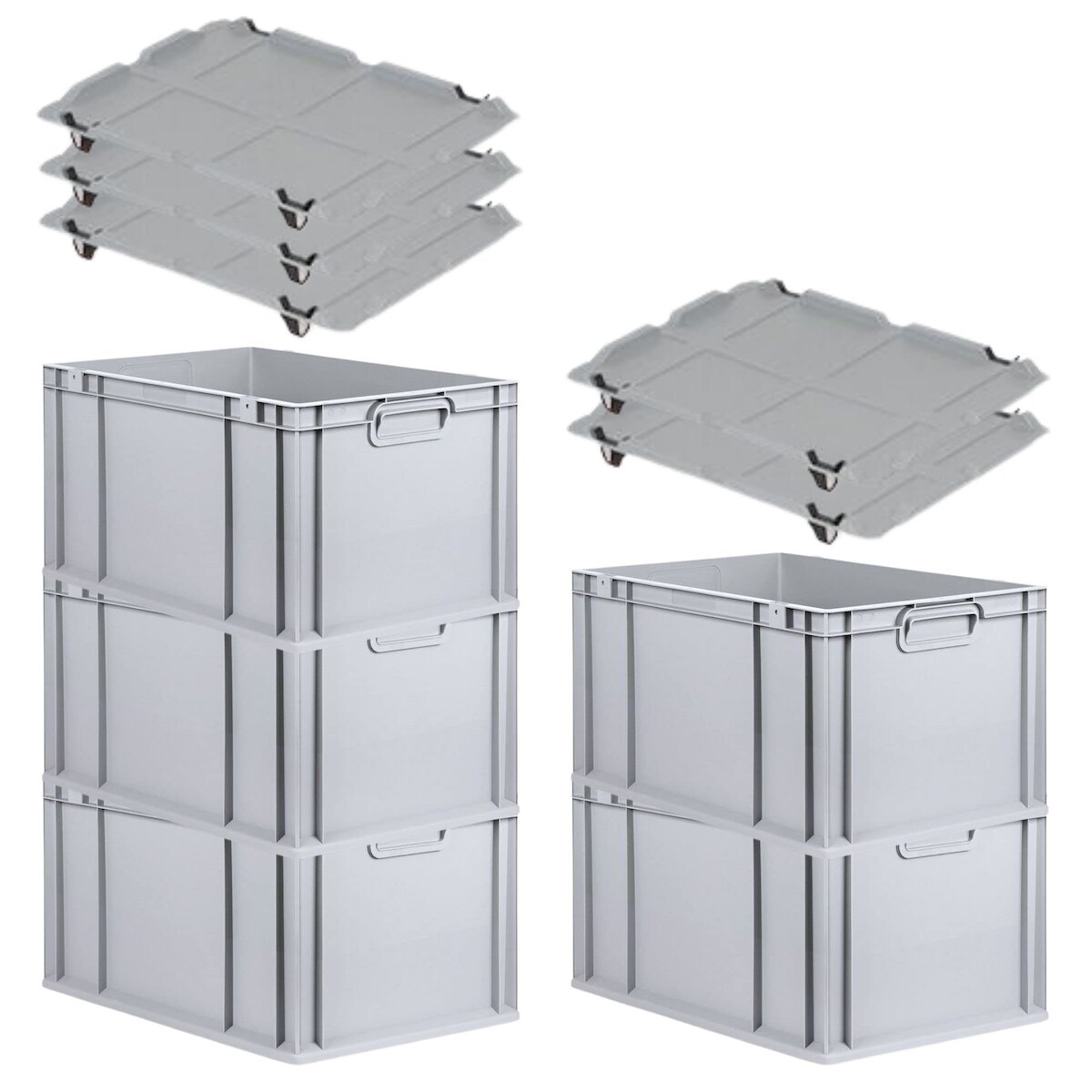 PROREGAL SparSet 5x Eurobox NextGen Economy mit Auflagedeckel & 4x Verschlüsse Schwarz, Griffe zu, HxBxT 32x40x60cm, 65L, Eurobehälter, Box