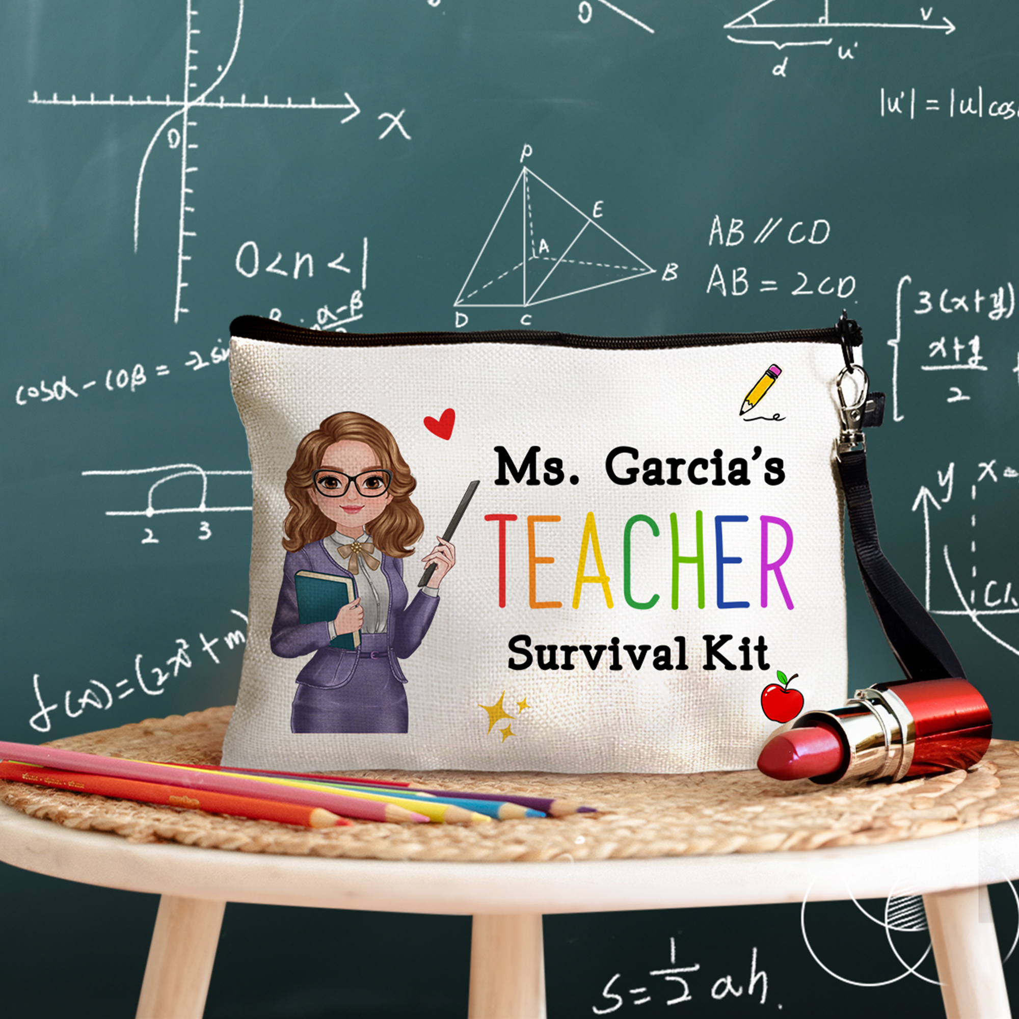 Borsa per il trucco personalizzata con testo e cinturino da polso Accessorio da viaggio per la festa dell'insegnante Regalo di apprezzamento per gli insegnanti