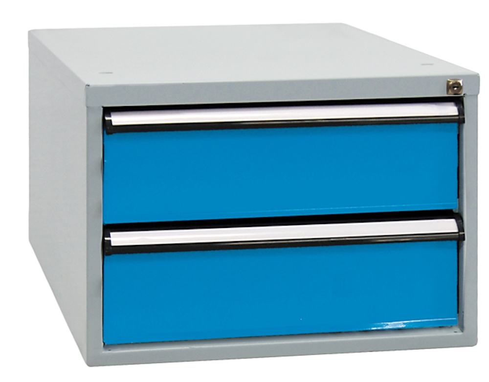 PROREGAL Schubladenbox mit 2 Schubladen für Werkbank Rhino| HxBxT 40x53x70cm | Traglast 60kg | Lichtgrau/Lichtblau